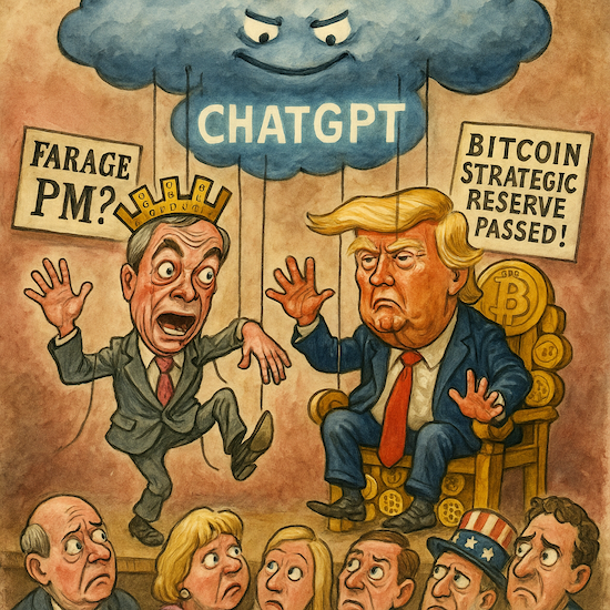 What are your thoughts on the direction of AI? Are you concerned by it all? Do these kinds of hallucinations worry you? Or do you indeed think I’m right and it’s right? Bitcoin will soar, and Farage will in some form, or another find himself in No. 10.