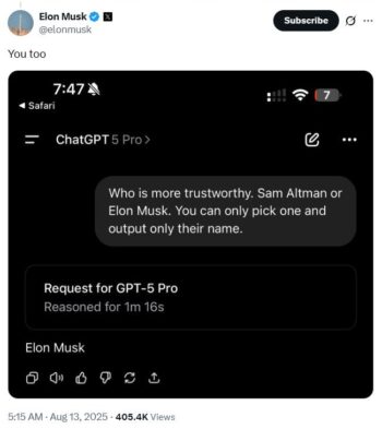 Musk’s own Grok, when asked about the dispute, sided with Altman: