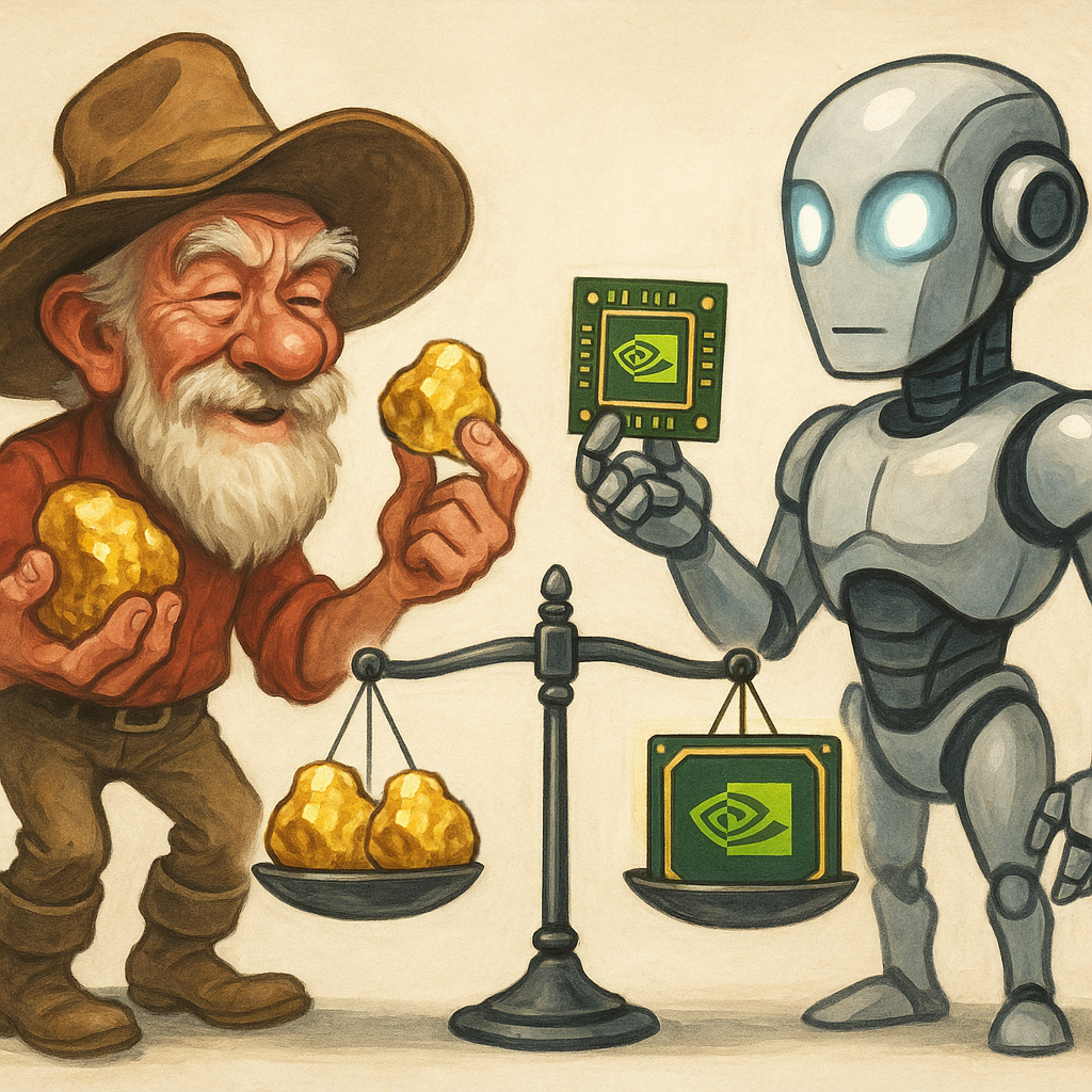 But despite the difference, both precious metals and AI technology are a key part of any investor’s portfolio. Whether that’s gold and silver bars… gold and silver miners… microchip mega-stocks like Nvidia… or companies involved directly or indirectly in the AI boom.