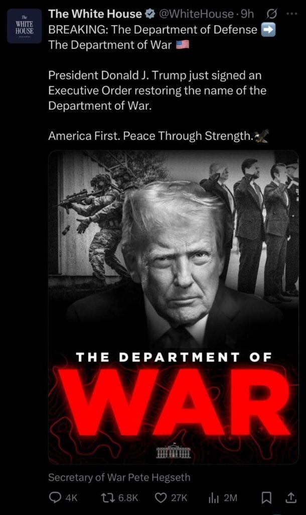 Now, when you see Department of War, you know that its role is exactly what it says on the tin.