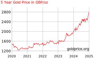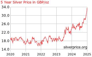 Similarly, silver has performed well too. It’s at £33.71 per troy ounce, having too doubled over the past five years, as the chart below shows.