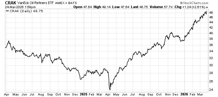 Refiners’ share prices soared quite a bit, as you can see here: