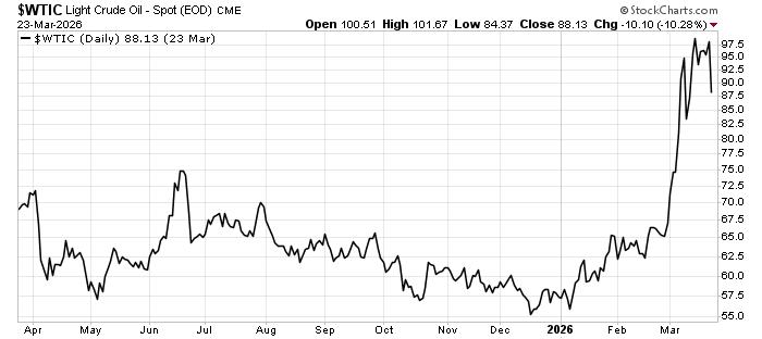 Here’s the current oil price chart for WTI: