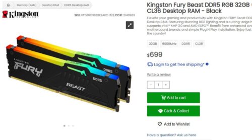• 32GB Kingston Fury Beast (2x 16GB) DDR5 SDRAM