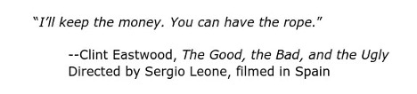 And of course, the ‘Spaghetti Westerns’ filmed in Spain and Italy and starring Clint Eastwood, could easily be remade in the US. Maybe they will be renamed the ‘Chick-Fil-A Mid-westerns’…filmed on set in Zanesville, Ohio.