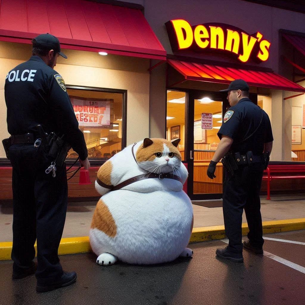 Fat Cat Being Arrested at a Denny’s Restaurant