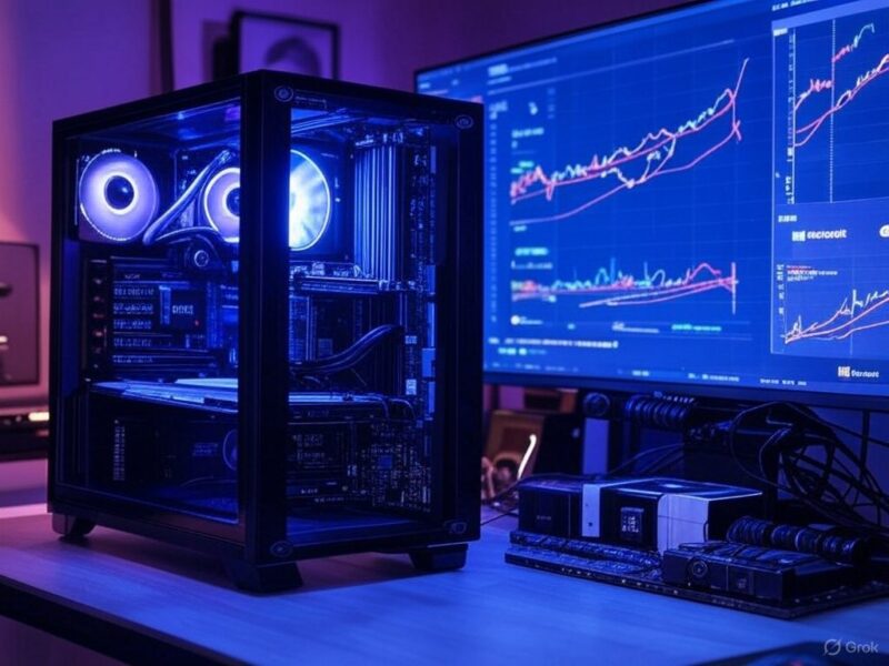 Then it’s a bunch of other stuff: a Gold+ 850W power unit, a liquid CPU cooler, thermally efficient case, couple terabytes SSD from Crucial, and RGB lights everywhere. It’s going to glow when it’s up and running.
