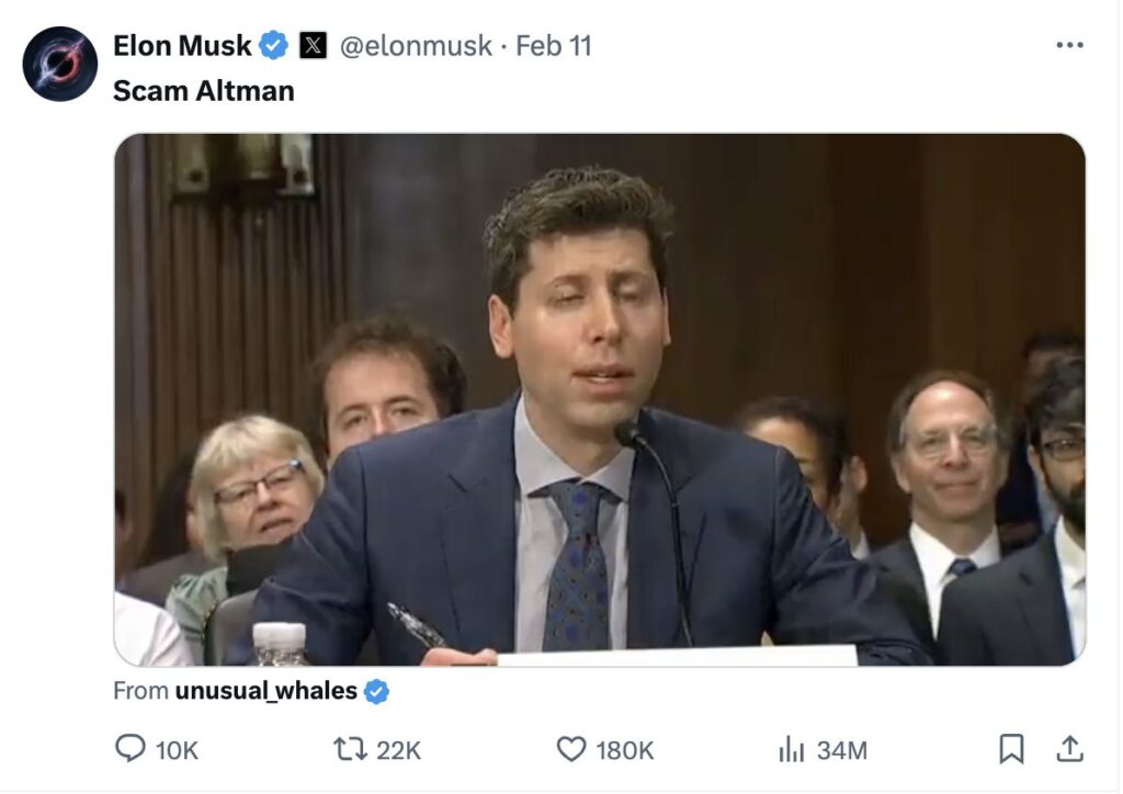 Meanwhile, Musk has been deeply involved in everything from the development of AI through xAI, to energy with Tesla (and robotics and EVs), space with SpaceX (and Starlink), and even, weirdly, an involvement in crypto through his love for Dogecoin and everything DOGE related. In short, their paths cross all the time. They have a chequered history together from OpenAI. In fact, it’s so chequered that Musk routinely posts “Scam Altman” on his X.com feed.